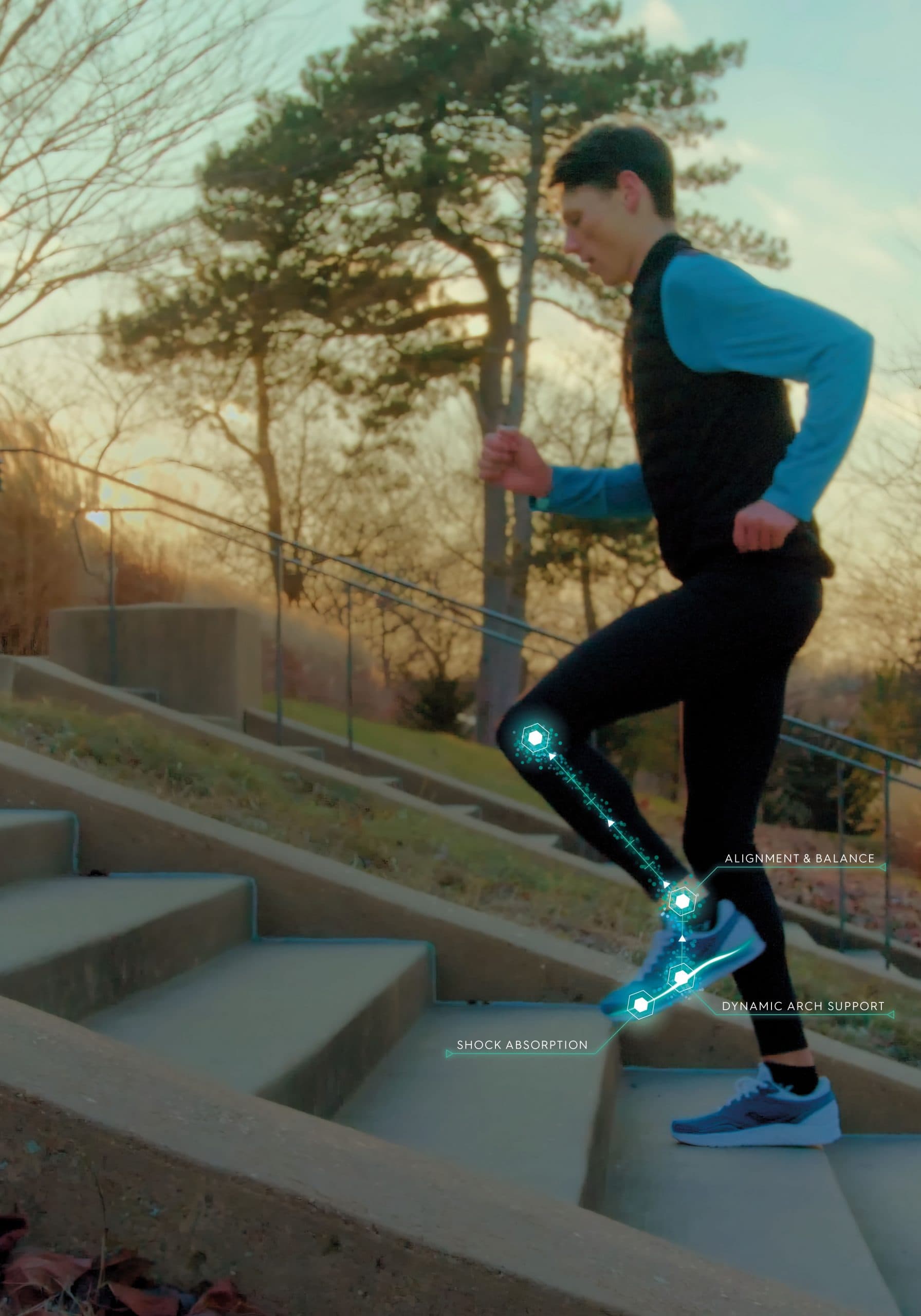 - Izboljšanje biomehanike: S stabilizacijo stopala se izboljša tudi celotna biomehanika gibanja. To pomeni, da se sile, ki delujejo na kolenski sklep, porazdelijo bolj enakomerno, kar zmanjša tveganje za poškodbe.